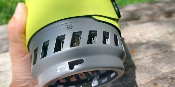 Ešus je opatřen izolačním obalem, který zvyšuje účinnost vlastního vaření, ale zabraňuje i popálení. Ešus a případně i celý vařič se drží buď stiskem celého ešusu přes neoprenový obal nebo pomocí sklápěcích madel, které jsou dostatečně velké a vejde se tam i celá chlapská ruka (takové madlo na poctivém půllitru). Ve spodní časti je tepelný výměník, který urychluje rychlost ohřevu – klasická a vyzkoušená konstrukce. Na okraji tohoto výměníku jsou dva otvory ve tvaru ležatého písmene „L“ pro fixaci k hořáku. Neoprenový obal je odnímatelný.