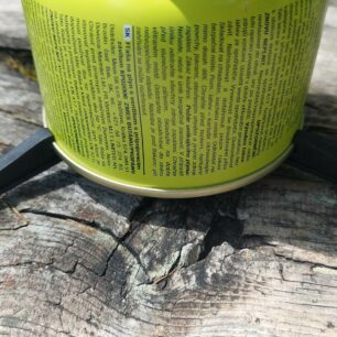 Skládací plastový trojramenný stojánek zvětšuje stabilitu celého vařiče. Zvláště když si uvědomíme, že se jedná o vysoký a poměrně úzký vařící systém. Výška 31 cm (při použití kartuše 230 g) a šířka cca 12 cm. Vařič používá kartuše s připojovacím závitem 7/16.