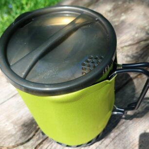 Součástí vařiče MEVA TRIPPER je i extra adaptér, který dovoluje i vaření v jiných nádobách, než je dodávaný ešus. Toto značně rozšiřuje jeho použití a rád jsem využil této možnosti pro vaření například kávy v moka konvičce. Nasazení redukce mi přijde intuitivní. Minimální průměr nádoby je cca 5–6 cm. Maximální průměr adaptéru je 13 cm. Větší hrnce už přes adaptér přesahují.