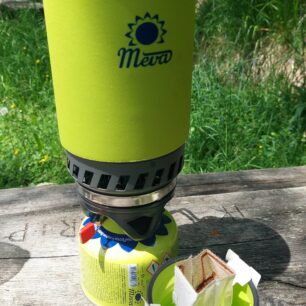 Butanový vařič MEVA TRIPPER je určen pro turistické účely k tepelné přípravě pokrmů a ohřevu kapalin. Součásti vařiče je nádoba o objemu 0,8l., která má ve spodní časti tepelný výměník, který urychluje rychlost ohřevu. Set dále obsahuje skládací stojánek pro stabilizaci kartuše – celého vařiče, adapter na jiné nádoby, než je dodávaný ešus a textilní obal. Jak se vařilo redakci Světa outdooru na české rychlovarce?