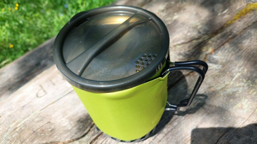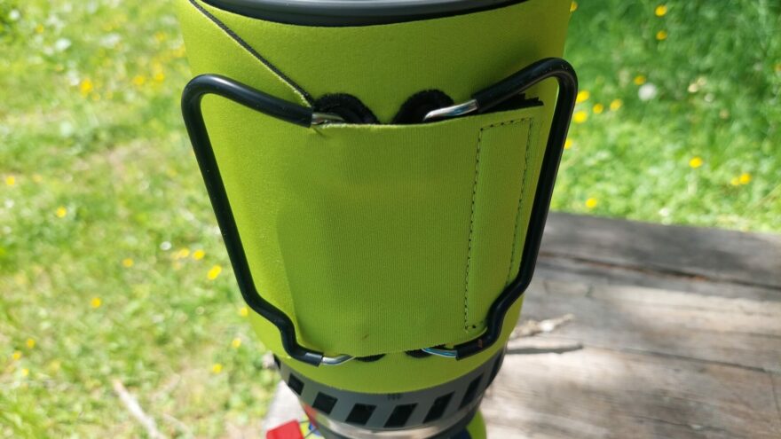 Ešus je opatřen izolačním obalem, který zvyšuje účinnost vlastního vaření, ale zabraňuje i popálení. Ešus a případně i celý vařič se drží buď stiskem celého ešusu přes neoprenový obal nebo pomocí sklápěcích madel, které jsou dostatečně velké a vejde se tam i celá chlapská ruka (takové madlo na poctivém půllitru). Ve spodní časti je tepelný výměník, který urychluje rychlost ohřevu – klasická a vyzkoušená konstrukce. Na okraji tohoto výměníku jsou dva otvory ve tvaru ležatého písmene „L“ pro fixaci k hořáku. Neoprenový obal je odnímatelný.