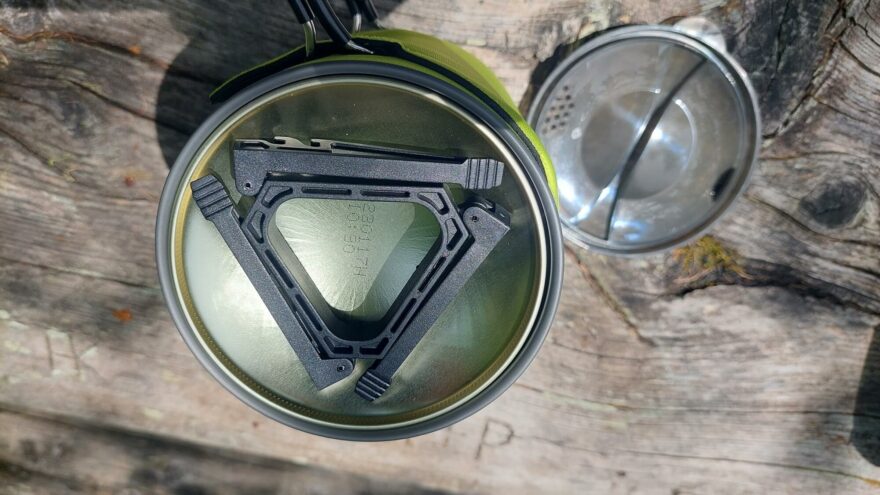 Součástí vařiče MEVA TRIPPER je i extra adaptér, který dovoluje i vaření v jiných nádobách, než je dodávaný ešus. Toto značně rozšiřuje jeho použití a rád jsem využil této možnosti pro vaření například kávy v moka konvičce. Nasazení redukce mi přijde intuitivní. Minimální průměr nádoby je cca 5–6 cm. Maximální průměr adaptéru je 13 cm. Větší hrnce už přes adaptér přesahují.