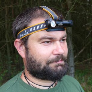 K ovládání čelovky slouží velké ovládací tlačítko kryté drsným pogumovaným povrchem. Na ovládání jsem byl zvyklý už od dřívější Amber, takže nebylo třeba se sžívat, protože je totožné. Nicméně pro nezasvěcené: delším podržením se čelovka zapne na posledním použitém režimu svícení bílého světla, dvojklikem se čelovka zapne v posledním použitém režimu červeného světla. Tato paměť na poslední použitý režim je moje velmi oblíbená funkce, protože úplně nesnáším, když mám svítilnu, která vždy začne „mžouravkou“ nebo naopak „vypalovákem očí“ a člověk se musí při každém použití proklikávat ke svému obvykle používanému módu. Paměť prozřetelně nefunguje pro nejintenzivnější režim 1600 lm, ale když na něm svítilnu vypnete, tak se zapne na 400 lm. Výše zmíněný „vypalovák“ zde tedy nehrozí ani chybou uživatele. Krátkými kliky se člověk pohybuje mezi jednotlivými intenzitami svícení v červeném nebo bílém světle. Při krátkém stisknutí ovládacího tlačítka vypnuté čelovky se rozsvítí dioda signalizující úroveň nabití – svítící zelená značí stav baterie 85 % a více, blikající zelená 85–50%, svítící červená 50 – 25% a blikající červená znamená stav pod 25 %. Doplním, že to jsou údaje pro dodávaný akumulátor typu Fenix 18650, při jiných zdrojích energie indikace nefunguje.