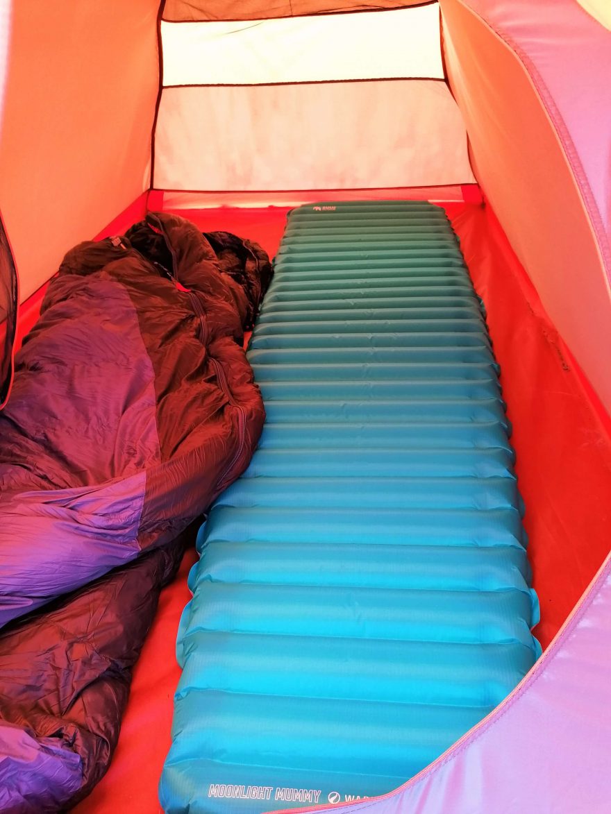 Příčné členění matrace Zulu Moonlight Mummy („H“ komory bez studených spojů) je pro mě osobně pohodlnější než matrace s podélnými komorami, které se snáz „slehnou“ a připraví tak o cenné centimetry vzduchu pod tělem. Díky dostatečné tloušťce zase nejsou cítit terénní nerovnosti – další bod k dobru a pro zvýšení spacího komfortu.