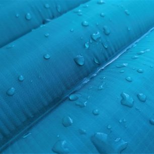 Světlá spodní část karimatky je vyrobena z protiskluzově upraveného nylonu, který je ještě potažen aluminiovou vrstvou. To znamená zvýšení tepelného komfortu a ve spojení s tloušťkou 6 cm tedy klidné noci bez chladu od země i při nižších teplotách. Karimatku jsem testovala i při nočních teplotách kolem 5 °C a ani tehdy se žádné drkotání zubů nekonalo. Dobré izolační vlastnosti podporuje ještě vrstva z mikrovlákna Warmthal, která je nalepená z vnitřní strany komor (včetně spojů mezi nimi) a to po celé délce karimatky.