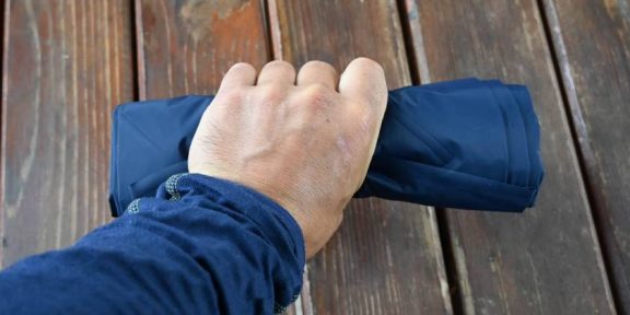 Součástí nafukovací karimatky je i obal se zavíráním na tkanici se samosvorkou. Obal je velkoryse naddimenzován, a i když si se sbalením nedáte žádnou práci, lehce karimatku do něho vložíte. Obal jsem používal i jako improvizovaný polštářek. Podařilo se mi do něho vměstnat mikinu. Kromě karimatky si do obalu můžete přidat další vybavení jako je například nafukovací polštářek. Součástí balení je i „repair kit“ – samolepka o rozměrech 5,5 x 6 cm s návodem k použití v angličtině. Tuto samolepku doporučuji do obalu přilepit na dno pomocí stříbrné pásky duct tape, aby vám nevypadla a měli ji po ruce, když ji budete nejvíce potřebovat. V případě úsporného sbalení se jedná o opravdu útlý váleček.