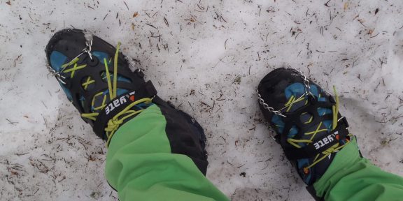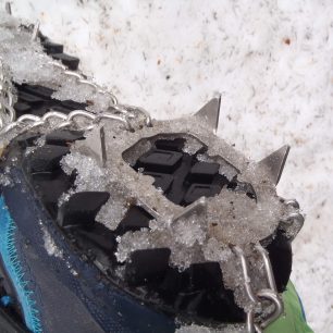 Délka ocelových hrotů je 17 mm na špičce a 14 mm na patě. Ocelové řetízky mají na nejvíce namáhaných místech svařovaná očka. Elastický popruh zůstává pružný i ve velkých mrazech. Tento údaj garantuje výrobce. Já se při testování dostal na cca – 10 °C. Díky pružné obrubě dobře sedí na všech typech obuvi, od lehkých běžeckých až po trekkingové boty. Jejich nasazení je dílem okamžiku.