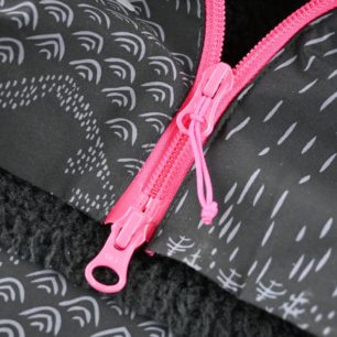 Na první pohled zaujme dvojice zipů. Hlavní spirálový zip je celopropínací a dovoluje oblečení či vysvlečení sukně i s lyžemi, sněžnicemi či mačkami na nohách. Zip je navíc zajištěn v pase i cvokem. Na pravé straně je 20 cm dlouhý zip v rozparku, který zlepšuje rozsah při šlapání či běžkování. Táhlo zipu již není opatřeno prodlouženým táhlem a pro ovládání bylo zpravidla nutné sundat rukavice. Táhlo je však „překlapávací“ a zajišťuje polohu jezdce na libovolném místě a neodstává.