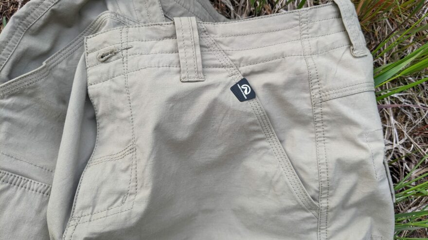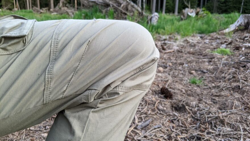 Při běžné chůzi o nich prakticky nevíte, při náročnějších krocích se krásně natahují přes koleno, díky vytvarované přední straně. Ani při výpadu tak nehrozí živlům vystavující odhalení holení a kotníků. Kalhoty drží na svém místě pomocí středového knoflíku spínající robustní prošitý pas. Pro pojištění disponují celou řadou poutek pro opasek, čehož jsem s radostí využil.
