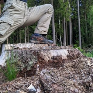 Mimo klasických klínových kapes zde najdeme čtveřici velkých nákladových kapes s připínacími chlopněmi. Jeden pár vzadu na hýždích, druhý vpředu na stehnech. Pravá stehenní kapsa je navíc vybavena menší úzkou kapsou například pro nůž. Zadní kapsy jsem prakticky nevyužil, ale přední vždy schovaly vše, co jsem potřeboval. Kvůli svému umístění je akorát nutné dávat pozor, co nebo jakým způsobem v kapse máte uloženo. Hranaté nebo špatně natočené předměty mohou při chůzi tlačit do stehen, na rozdíl od kapes po stranách. Alespoň u jedné z kapes bych ještě ocenil zavírání na zip pro maximální jistotu uchování svého obsahu. Ale to může být čistě subjektivní požadavek, kdy se občas dostávám do poloh horizontálních nebo skoro vzhůru nohama, což rozhodně není případ všech.