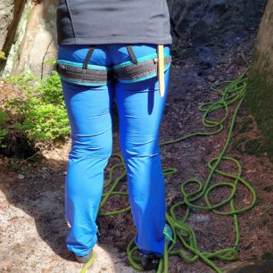 Kalhoty byly testovány na jaře, při slunných dnech na skalách, ale i v lese nebo v kempu u vody při pádlování na seakayaku. Při pohybu byly kalhoty velmi poddajné a pružné, nikde neškrtily. Při lezení se člověk potí, ale u těchto kalhot nebyly vidět žádné mokré skvrny. Pocit lehkého zvlhnutí materiálu jsem měla pouze v místech pod sedacím úvazkem.
