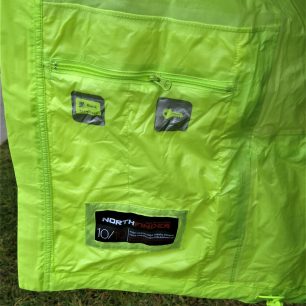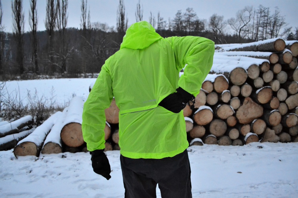 - V levé části je velká kapsa, do které je možné složit bundu anebo při sportu uložit další věci. Nad ní je ještě jedna menší, která je ideální na jakkoli velký mobilní telefon. Nevýhoda je však v tom, že i přesto, že je kapsa určená na telefon, tak při běhu v ní telefon skáče. Je to celkem rušivý a nepohodlný prvek