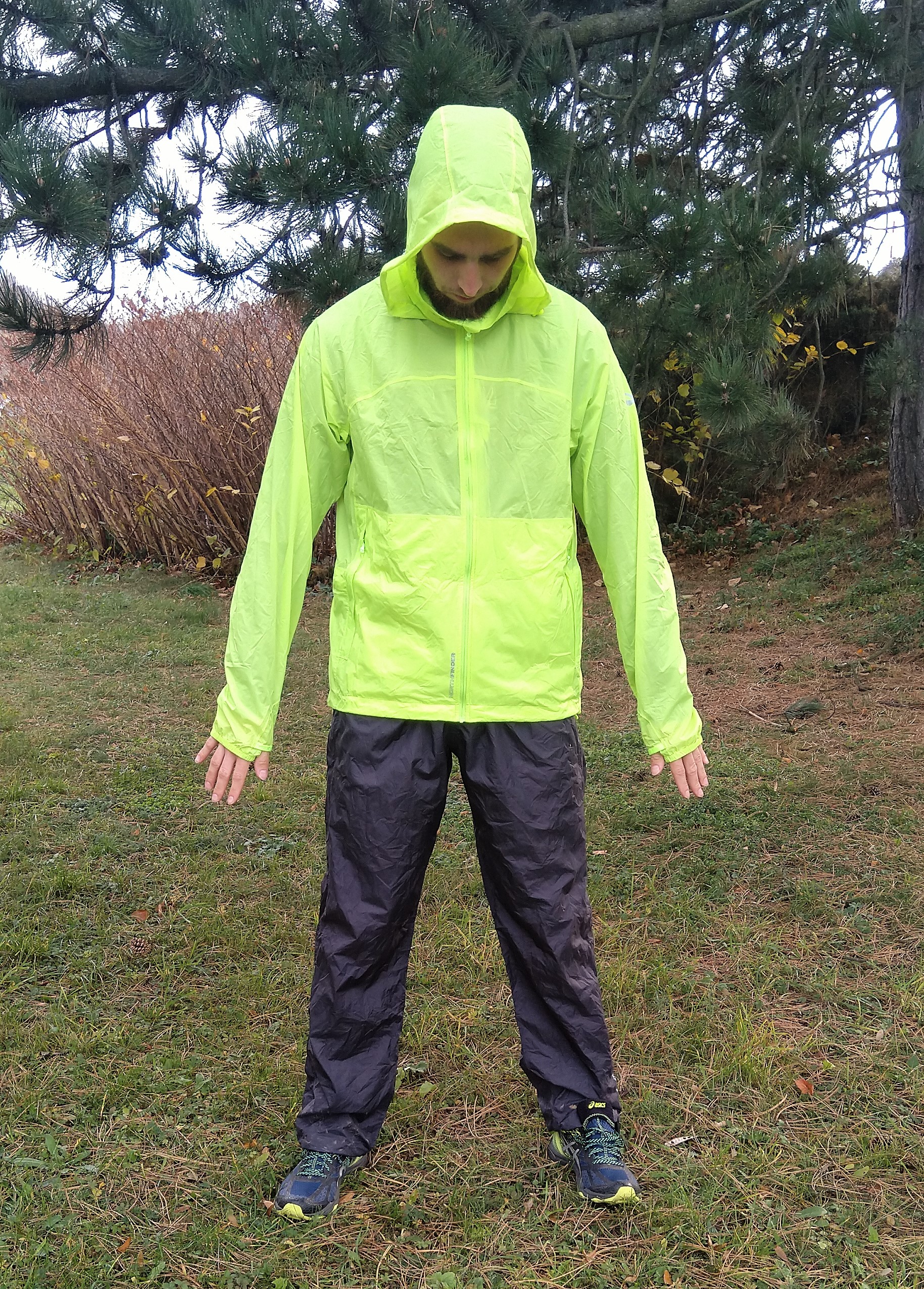 Není ničím zvláštním, když se na celodenním výletu nebo na několikahodinovém ultramaratonu změní náhle počasí. Pak litujete toho, že nemáte nic s sebou. Tento set kalhot a bundy však váží dohromady pouhých 450g a je možného ho složit do dvou malých kapsiček (22×10 cm u bundy a 20×9 cm u kalhot), které bez problému dáte do každého běžeckého batohu nebo kapsičky na kolo. I když vyběhnete do dvou tisíc metrů a ochladí se na bod mrazu, začne foukat vítr a pršet, tato bunda a kalhoty budou tím nejlepším společníkem, který vás zachrání.