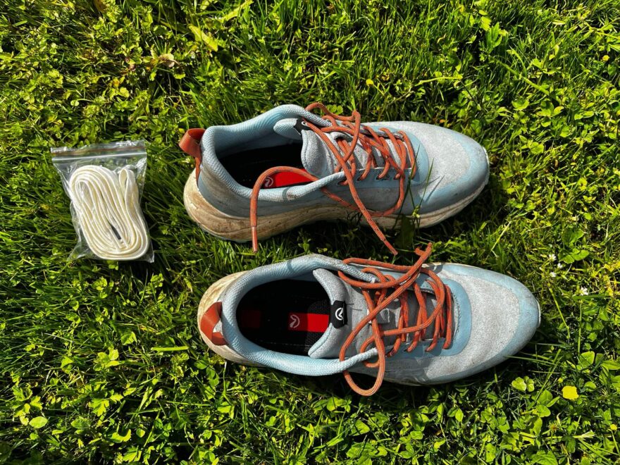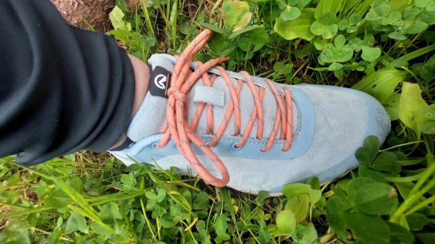 Bota je v oblasti špičky, paty a v okolí tkaniček zesílena gumovou vrstvou, která chrání botu před odřením a nohu před nárazy kamenů. V botě je defaultně „našněrovaná“ kulatá tkanička, která dokáže botu držet hezky staženou, ale ze začátku, než se trochu “ochodila” se rozvazovala z mašličky. Součástí boty jsou i náhradní ploché tkaničky, ale v jiné barvě, bíle.