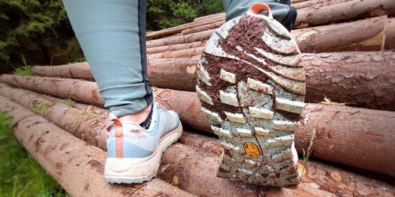 Bota se skládá z podešve VIBRAM® Megagrip, mezipodešve EVA a stélky Ortholite®. Jedná se o mohutnější konstrukci boty, která ale zajišťuje pohodlí. Díky tomuto kombu nebudete cítit kdejaký kamínek na cestě. Celá bota je inspirovaná běžeckou obuví. To poznáme tak, že chůze je taková houpavá, protože podrážka má tvar kolébky. To zajistí pohodlnou chůzi jak na krátké, tak i na dlouhé vzdálenosti. Mezipodešev EVA společně se stélkou Ortholite® jsou navrženy tak, aby společně rozkládaly nárazy a chránily tak klouby, patu a achillovku.