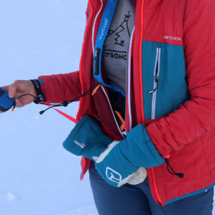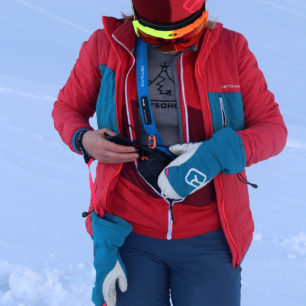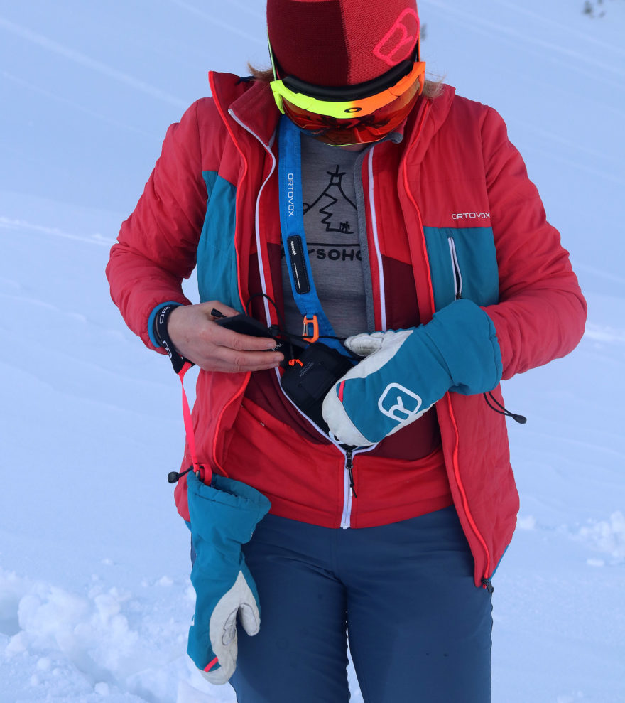K Ortovoxu Diract Voice výrobce vyvinul velmi povedené pouzdro snadno upravitelné pro jakýkoliv typ postavy. V předním rozšířeném popruhu je navíc integrována destička pasivního lavinového systému Recco. S pouzdrem se snadno manipuluje a vyhledávač je možné z něj snadno rychle vytáhnout pomocí širokého krycího pásku s fixačním suchým zipem. Suchý zip je možná trochu předimenzovaný na předpokládané použití, ale zase se s ním snadno manipuluje i v rukavicích. Vyhledávač je opatřen dynamickým lankem s karabinkou pro upevnění k pouzdru. Lanko je dostatečně dlouhé na to, aby se s vyhledávačem i při podřepu dosáhlo až úplně na sníh.