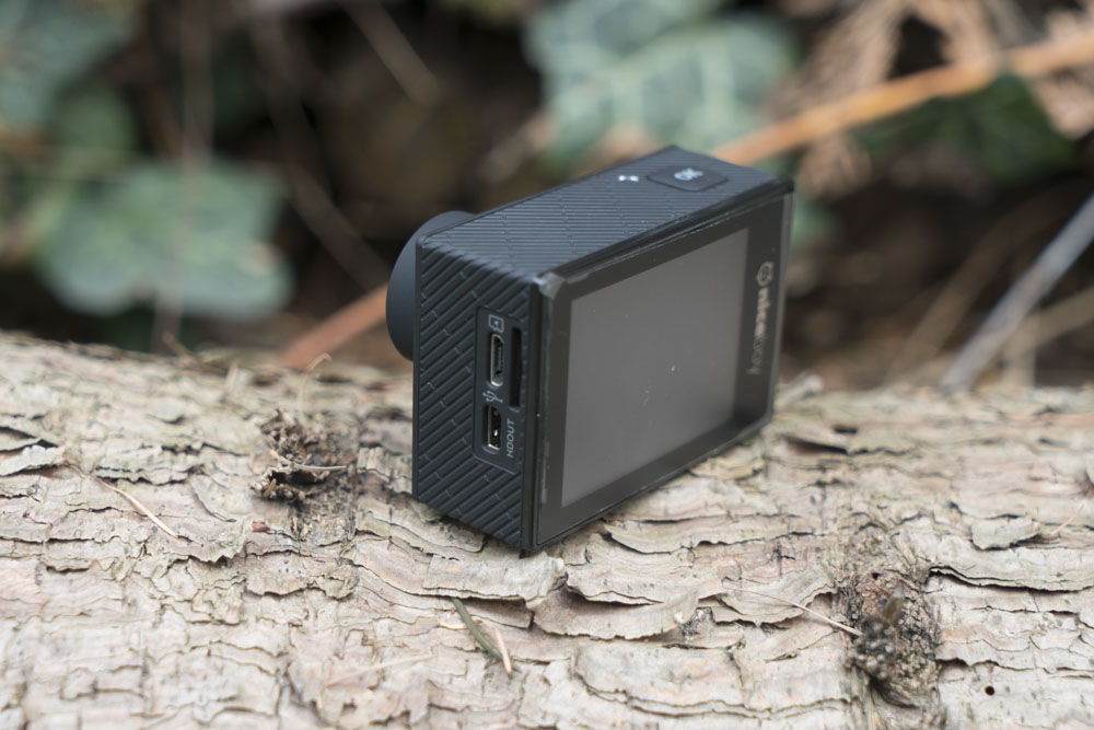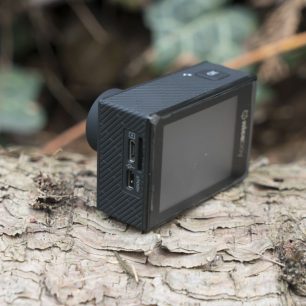 Samotná kamera nebudí přiliš dojem odolného přístroje. Akumulátor se vkládá pod tenkou plastovou krytku, která ale překvapivě drží dobře. Pro paměťovou kartu je tu připraven microSD slot, který nemá ale jakýkoli kryt a tak je spolu s konektory microUSB a microHDMI vystaven případné vlhkosti a prachu. Používání kamery v prašném prostředí bez vodotěsného obalu bych tedy nedoporučoval. Naproti tomu všechna 4 ovládací tlačítka působí spolehlivě, mají přesný a pohodlný stisk.