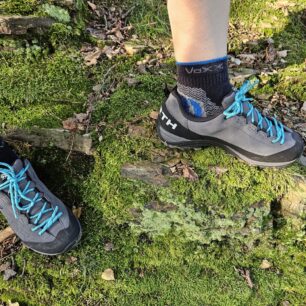 Botky se v pánské i dámské variantě liší asi jenom rozsahem velikostí, Meru 41-47 a Mana 36-41, a barevnými kombinacemi. Je trochu nestandardní, aby výrobce nabízel pro dámy méně barevných variant než pro pány. V jedné barvě se Meru i Mana shodnou, a to je tmavě šedá. Z dalších jsou Meru k dispozici v modré, džínově modré a olivové. Oproti tomu Mana mají už jen azurově modrou a višňovou. Na testování jsme si vybrali barevně džínově modré Meru, zatímco u dámského modelu jsme zvolili tmavě šedou.