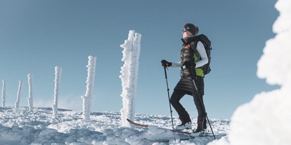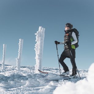 Péřový set jsem využila hlavně při skitouringu v Krkonoších a na běžných výletech. Nejsem úplně zmrzlík, takže jsem set oblékala ve větší nadmořské výšce, kde už pofukovalo, nebo jsem mohla při výstupu prostydnout. Vesta má skvělý tepelný komfort, neprofoukne, opravdu vás drží v teple a je příjemná. Do vysokého límce se „zachumláte“.