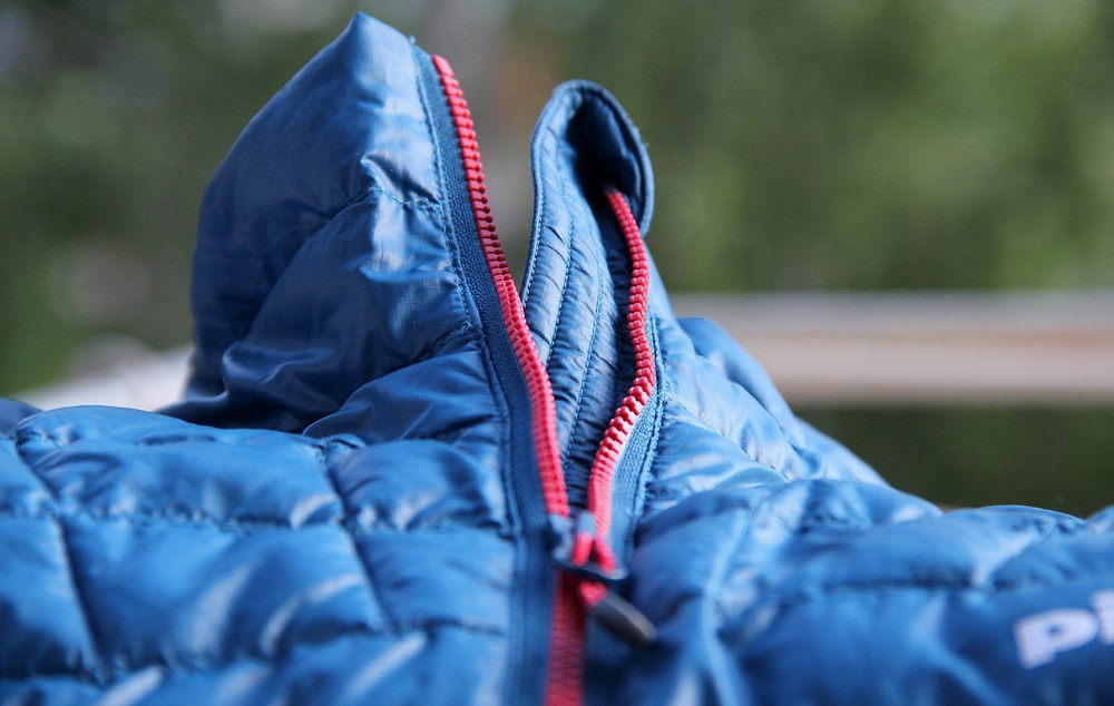 Zakončení hlavního zipu légou proti odření krku u vesty Pinguin Glimmer