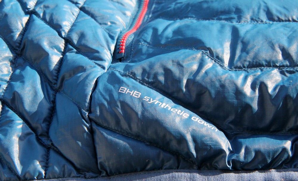 Co si představit pod pojmem „syntetické peří“? Materiál BHB synthetic down kombinuje výhody přírodního peří, jako jsou výborná termoizolace, vysoký loft, nízká hmotnost a vysoká stlačitelnost, společně s výhodami syntetické izolace, jakou je vysoký izolační výkon i ve vlhkém počasí. Navíc je vhodné i pro osoby trpící alergií. Takže by mělo izolovat i v případě vlhkého počasí. Dále je vhodné pro osoby trpící alergií. Podle údajů výrobce by měl být izolační výkon velmi podobný husímu peří 600cuin. Tento materiál je lehve stlačitelný a je lehký.
