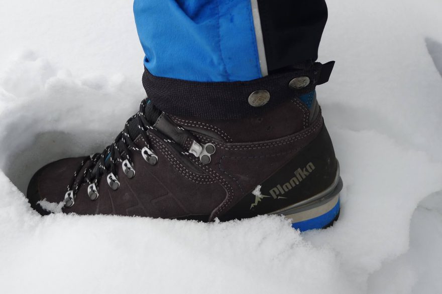 Testovali jsme Planiky i ve sněhu – a vedly si opravdu dobře. Odolnost vůči vlhku jsme celkem čekali. Nicméně nečekaně mile nás překvapilo, jak skvěle boty drží ve sněžnicích, právě díky tomu, jak jsou pevné a robustní.