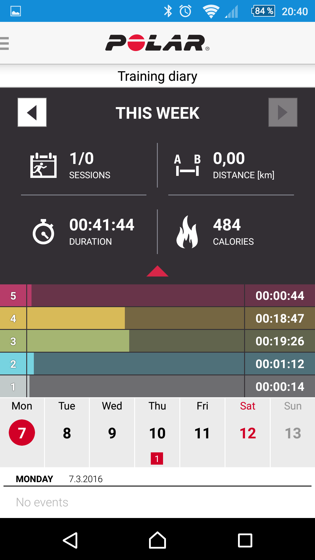Aplikace Flow – aktivita v týdením přehledu