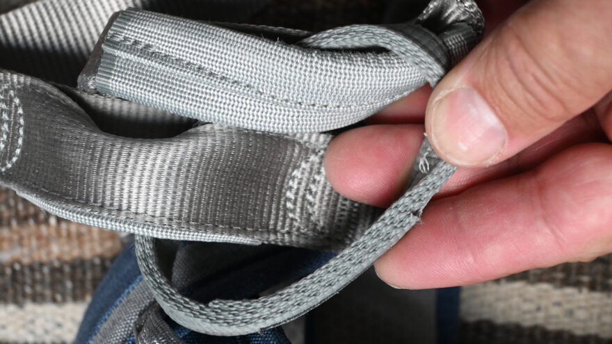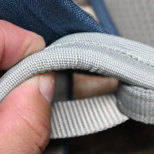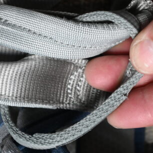 Určitě zaujme barevnost. Vlastně barevné varianty tři: modrá, zelená a šedá. A tři velikosti. Dále pevná opletená poutka a bohaté polstrování. S podobnou konstrukcí jsem už měl sedáku za svou lezeckou kariéru několik a obával jsem se, že popruh překrytý polstrováním nebude poskytovat dostatečný komfort, ale mýlil jsem se. Jak moc?