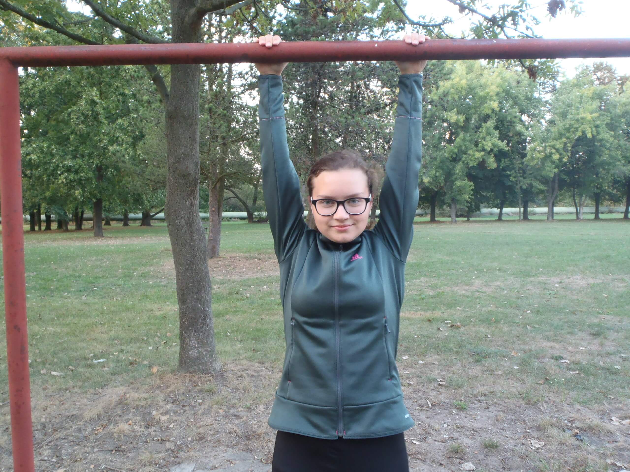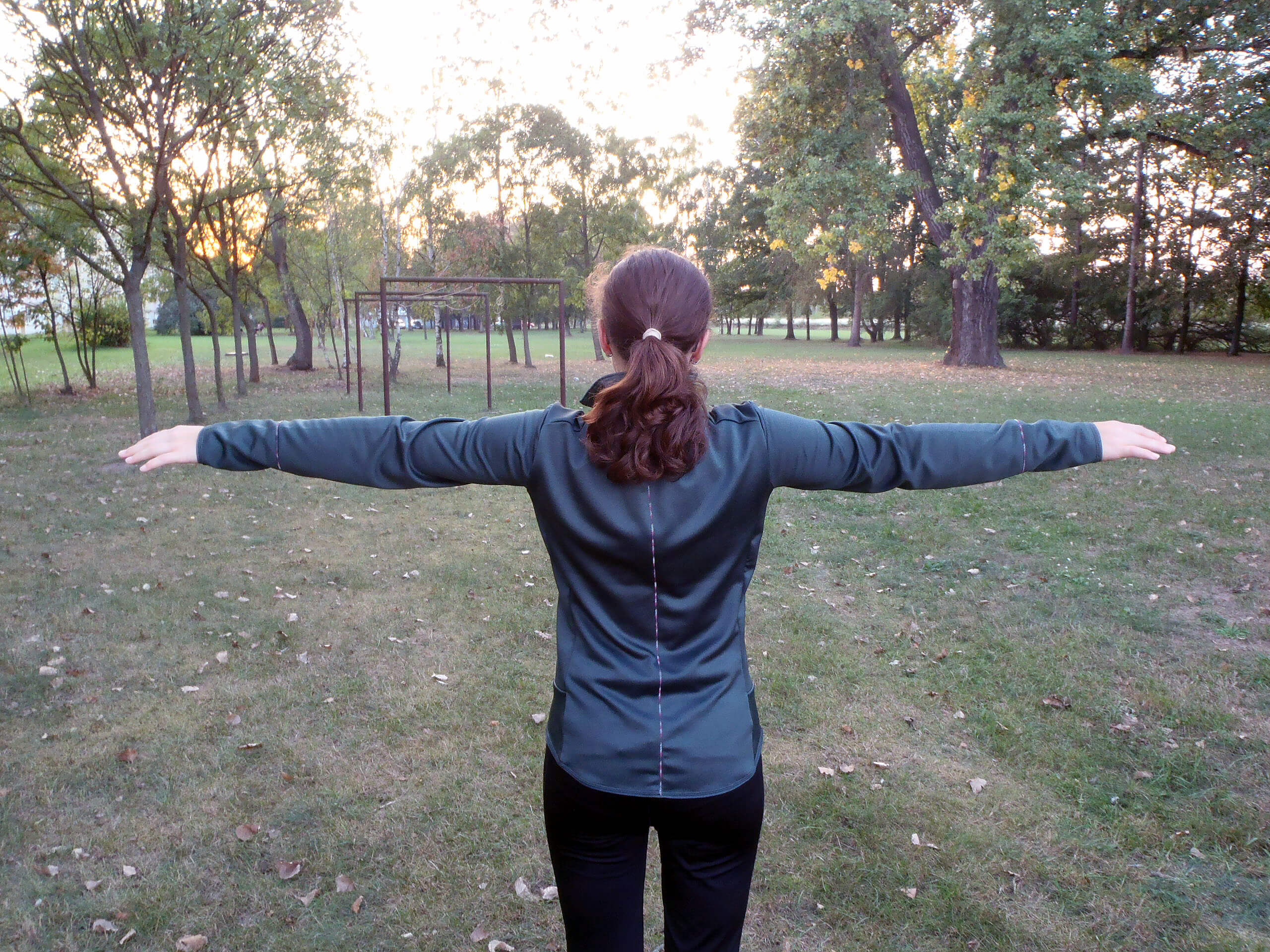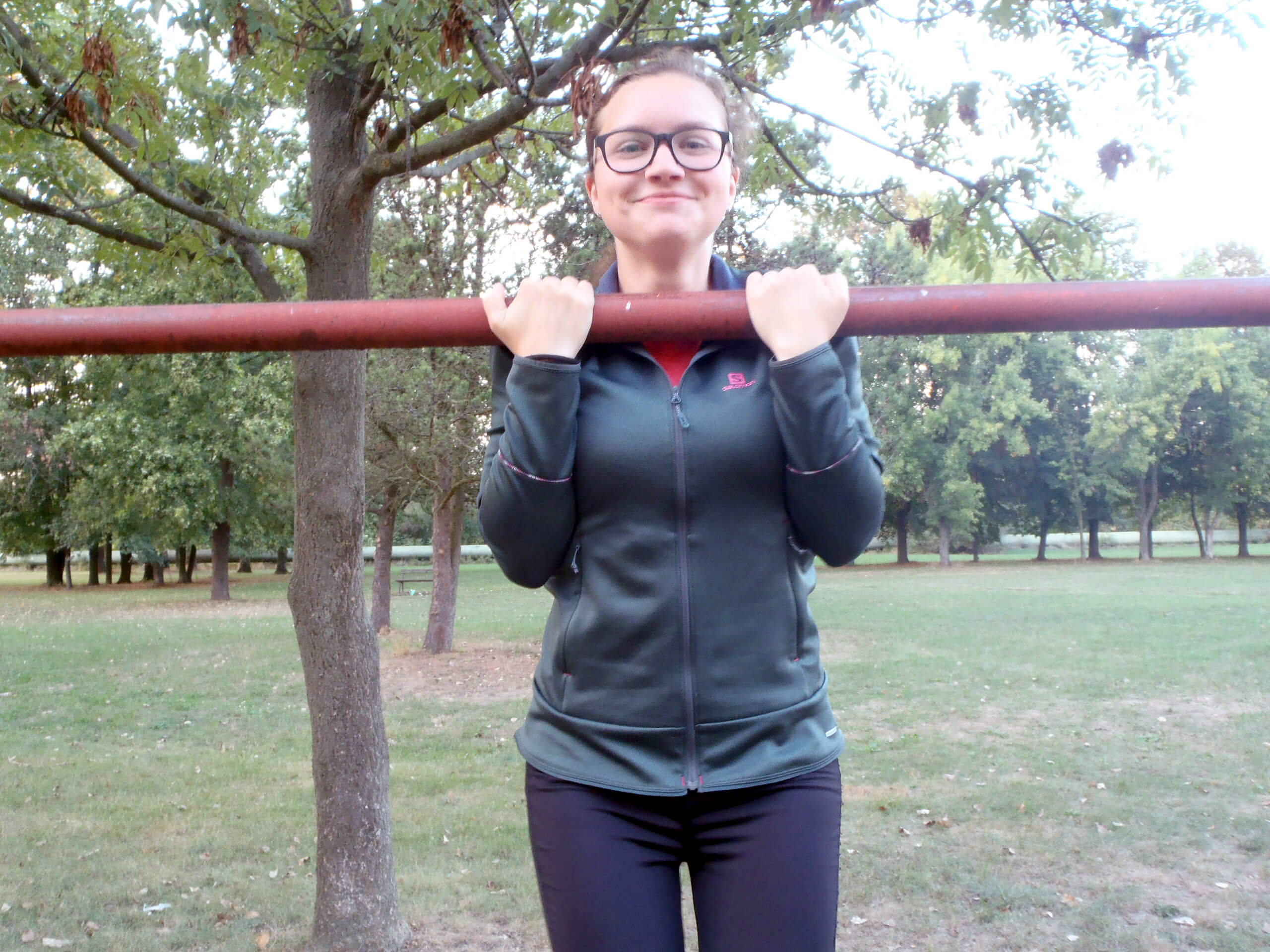 Vytahování mikiny Salomon Discovery FZ W při zvednutých pažích je úplně v pohodě.