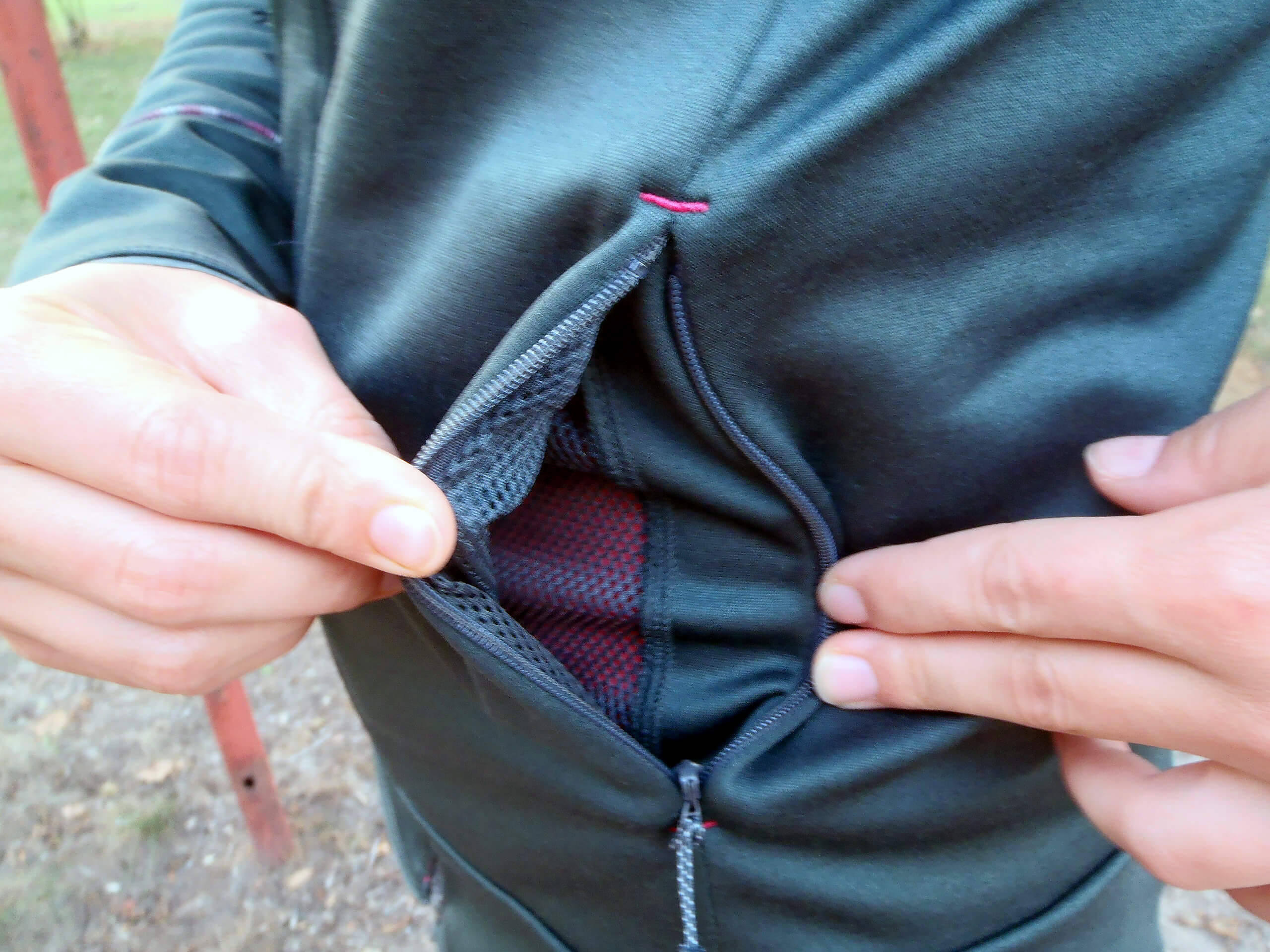 Vnitřek kapes u mikiny Salomon Discovery FZ W je síťovaný.