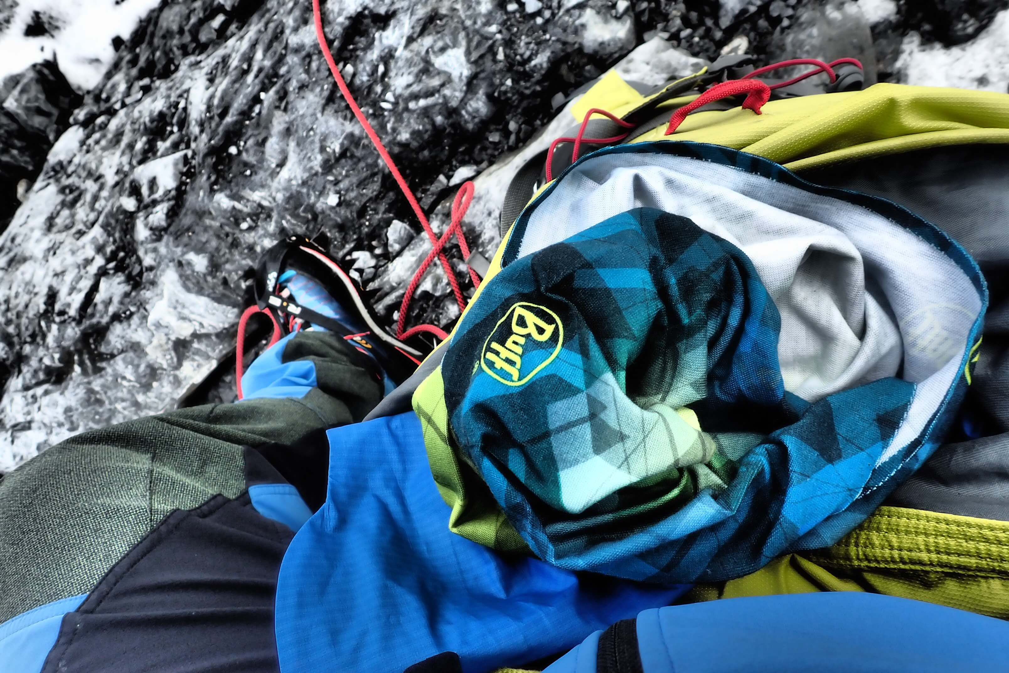 S používáním tohohle šátku jsem úplně nahradil nošení čepice či kulicha. Zvládne všechno a dobře se drží i v teplotách nad nulou. Nejmarkantnější test probíhal na ledovci od ranních mrazivých teplot až po polední výheň. Všude, na horách, skalách i na vodě, obstál. Při velkém slunečním žáru jsem šátek obrátil na ruby a využil jeho rubovou světlou stranu. Počet nošení a aplikací je téměř nekonečný: šátek, čepice, kukla, nákrčník, nátepníček,… navíc se mi líbí i design. Odvod potu je též příkladný. Šátek je dále ideální pokrývka hlavy pod helmu. Jakoukoliv.