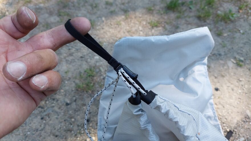Vyrobený z materiálu Robic ripstop nylon se zátěrem z obou stran. Co to znamená? Že když tě přepadne přeháňka nebo sklouzneš po mokrém vápenci, batoh se ti nevysměje. Odolnost by měla být taky dostatečná, pro tahání do skal a během testování nedošlo ani k malému poškození. Skvělá je použitá světlá látka tak, že je uvnitř batohu dostatek světla a dobře se hledají věci a vybavení.