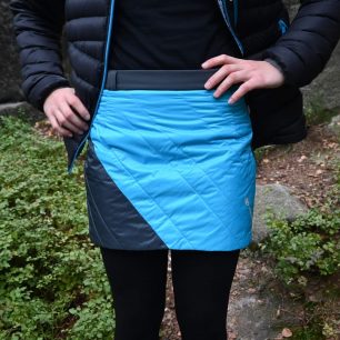 Oceňuji použití přírodní izolace – vlny ALPIN WOOL 3000, která krásně „hřeje“ a je navíc hypoalergenní a odolává pachům. Vrchní materiál je příjemný na dotek a částečně i voděodolný díky úpravě DWR. Sukně váží pouhých 150 g, nezabere v batohu, ale i v ledvince takřka žádné místo a vytvoří pohodu při jištění, posezení v kempu nebo čekání na pomalejší kamarády na skialpech. A taky sukně neprofoukne, což je taky důležité a zvyšuje to tepelný komfort. Zvláště na skialpech nebo na lyžích.