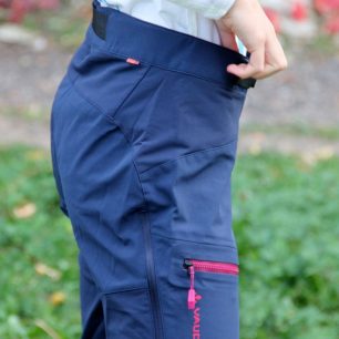 Odvětrávání kalhot při rychlém aerobním pohybu nebo slunečné jarní skialpové túře je vyřešeno dvěma zipy z vnější strany nohou, které se otevírají nahoru. Na rozdíl od dříve populárních celorozepínacích bočních zipů jsou u hybridních kalhot Vaude zipy odhalující nohy jen částečně. Zipy jsou opatřeny koncovky pro snadnou manipulaci v prstových i palcových rukavicích. Obdobně je snadné se dostat do dvou velkých kapes nad koleny, které jsou uzavíratelné zevnitř ven barevnými voděodolnými zipy.