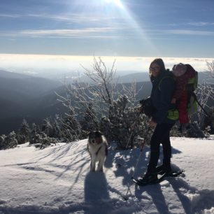 Do kopce je chůze v hlubokém sněhu vždy o něco náročnější, sněžnice jednodenní vrstvu prašanu zvládaly dobře a nijak nepříjemně jsem se nebořila. Na přemrzlém sněhu fungovaly dobře přední čtyři hroty, ale zadní dvojice hrotů už byla mimo plochu mého chodidla, a proto tak dobře nefungovala. Naopak při chůzi z kopce mám na sněhu přirozenou snahu se klouzat, což v prašanu skvěle fungovalo.