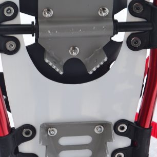 Hliníkový rám sněžnic Yate Raptor je pevný a lehký. Nekroutí se. Nosná plocha je plastová a sníh se na ní vůbec nedrží. Univerzální hroty zase zajišťují snadný pohyb ve zledovatělém nebo strmém terénu. Upevňování na botu je snowboardového typu pomocí pásků s ráčnami a perfektně drží. Co mi naopak ale trošku chybělo?