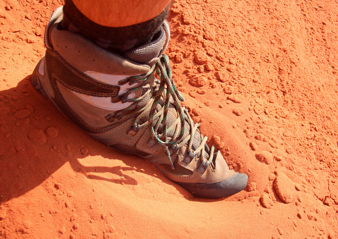 Outdoorové boty SOCOMPA byly postupně usilovně testovány jak v podzimních a zimních plískanicích a blátu středoevropského podnebního pásu, tak horách a pouštích Jordánska. Jak ukazují fotografie, spolehlivě mně donesly až do míst, kde opravdu „chcípl velbloud“, přičemž ani intenzivní sluneční světlo a teplota nebyla v těchto polovysokých botách od Prabosu nějak negativně pociťována. Ani rozžhavený písek nebyl díky silné podešvi PU cítit. Vzorek Vibram Vinkler navíc překvapivě dobře zabíral i na čistě písečných dunách.
