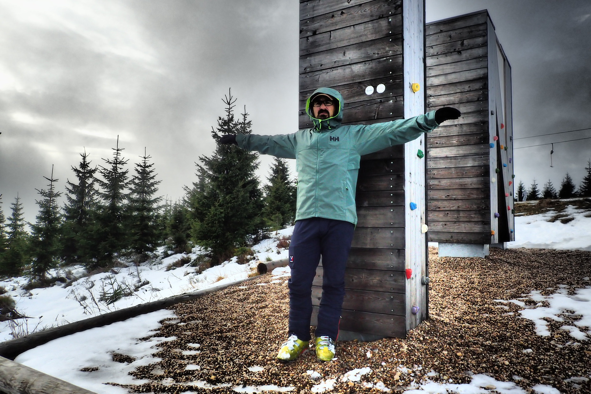 Ochrana ve větru na krkonošských hřebenech v Helly Hansen softshellové bundě VANIR LOGR JACKET.