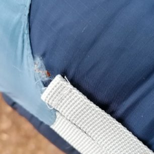 I vnější látka spacáku je příjemná na dotek. Ačkoliv ve mně na první pohled nevyvolávala přehnanou důvěru, během celého testování nedošlo k žádnému mechanickému poškození a materiál působí netknutě. Jedná se o Nylon 70 D 230T s ripstop úpravou a tedy zvýšenou tržnou pevností.