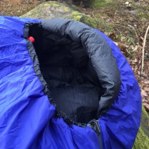 Velmi dobře mi seděla kapuce, která má dostatek peří nad hlavou, tudíž není potřeba nosit na noc čepici, na čele je pěkný buclatý teplý váleček. Oproti spacákům, které jsem doteď měl, je kapuce více probraná a nabízí tak víc místa na hlavu. Samotný otvor na obličej je relativně malý tak, aby nedocházelo ke zbytečným ztrátám tepla. Samozřejmostí je možnost stažení gumičky kolem obličeje, stejně jako utažení krčního límce. Jako ideální se mi osvědčilo utahovat pouze gumičku, která vede pod bradu. Gumičku vedoucí nad hlavou jsem nechal povolenou. Získáte tak dostatečný prostor pro obličej, ale pod bradou bude spacák pěkně utažený.