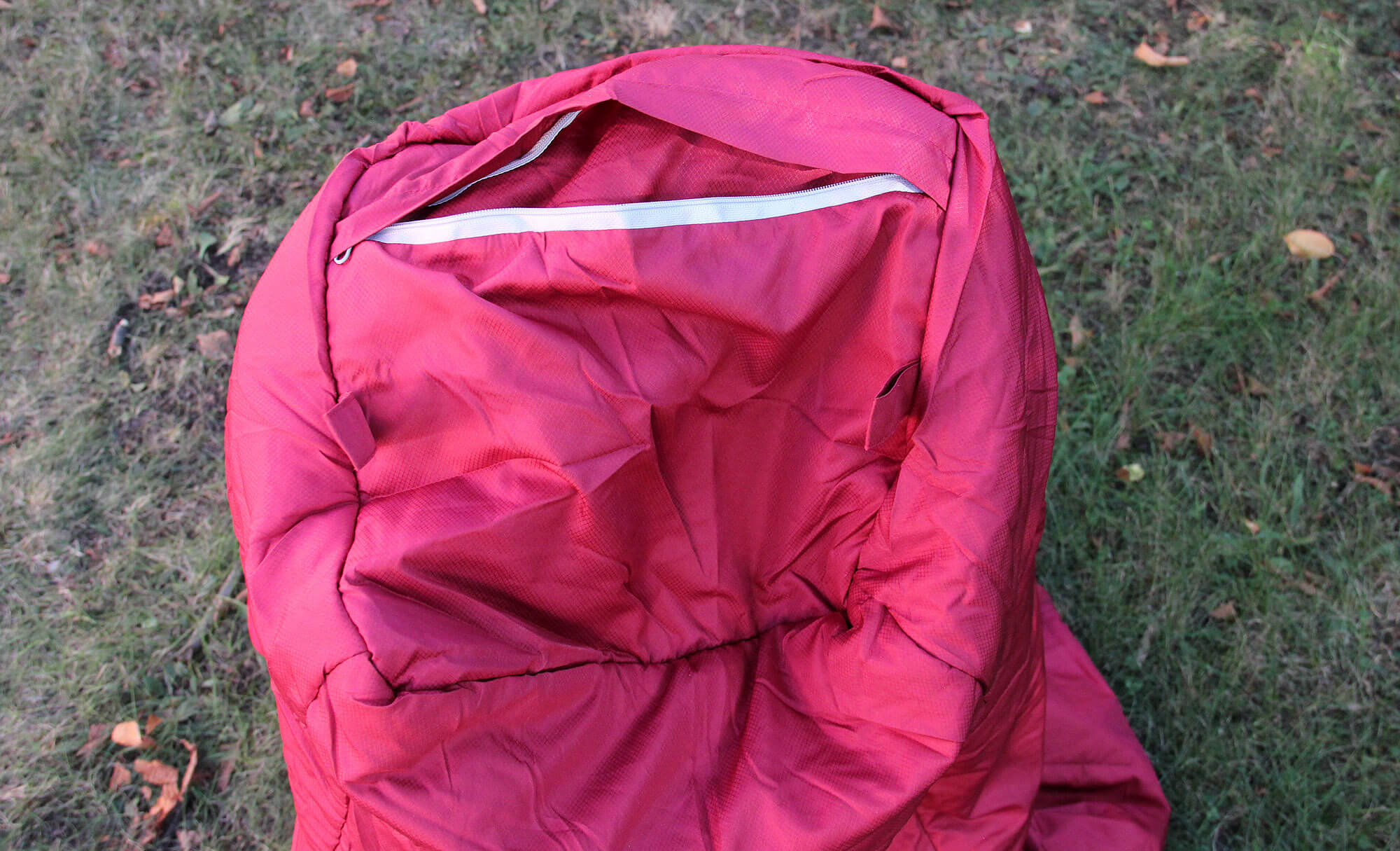 Pro pohodlnější spaní je velmi povedenou vychytávkou velká kapsa na polštář. Ze strany od zipu se snadno vloží i středně velká podpora pod hlavu. Další zipem uzavíratelná kapsa je v nožním zakončení spacáku obdélníkového tvaru o šířce 30 cm a výšce 28 cm, kde je zip kapsy v jedné třetině zakončení. Velikost kapsy 30 x 20 cm pojme bez problémů i papíry formátu A4. Primárně je určena na pytel od spacáku, aby se neztratil a byl tak po ruce. Kapsa na doklady, mobil, baterky, apod. je v límci spacáku 13 cm od postranního zipu. Kapsa má velikost 20 cm na šířku a 15 cm na výšku, přičemž jezdec zipu končí u horního okraje. Lepší řešení by bylo, aby byl jezdec zipu dole.
