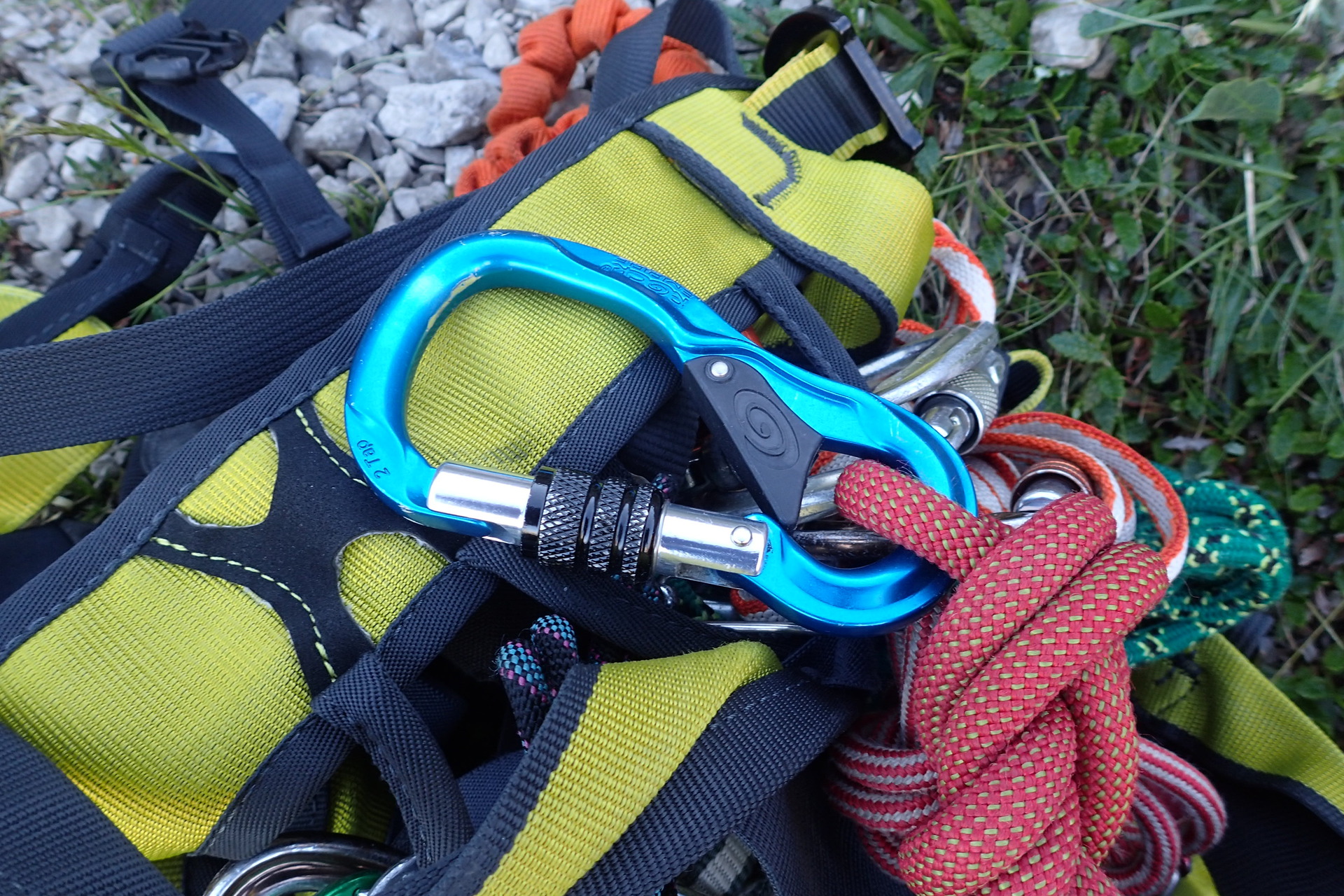 Na zajištěních cestách (via ferraty) jsem tuto karabinu používal jako karabinu na konec pomocného lana na jištění v těžkých místech. Díky příčce drží stále na svém místě a k zachraňovanému dorazí vždy ve správné poloze. Pak stačí zacvaknout a zajistit šroubovací pojistkou.