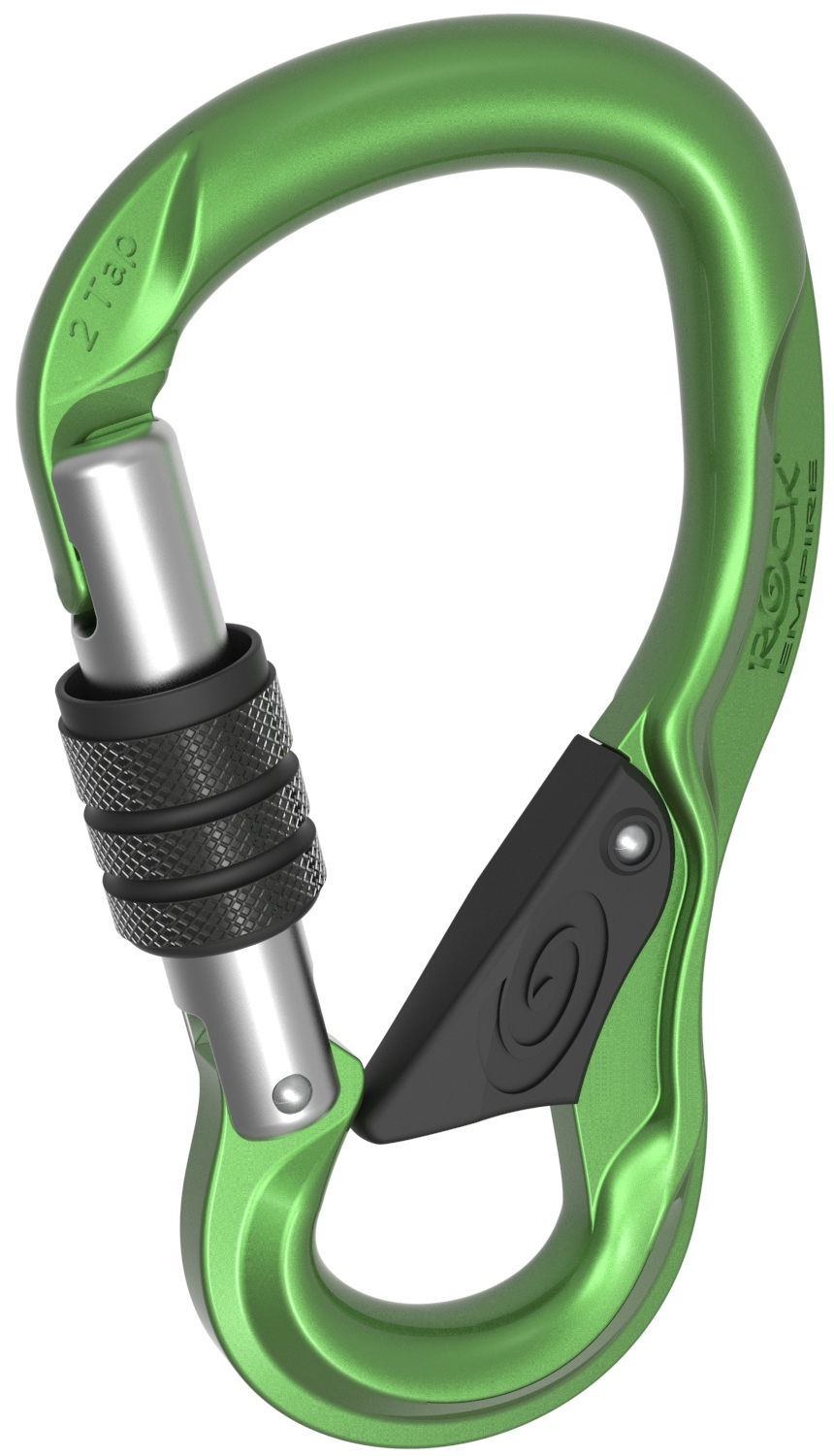 Příjemně padnoucí karabiny do ruky, kterou firma ROCK EMPIRE přispěla k vyšší bezpečnosti při jištění. Karabinu můžete i ovládat s kratšími prsty, jelikož je na jedné straně (na straně příčky) zúžená a vy tak snadno dosáhnete na západku a šroubovací pojistku. Taktéž vše bez problému v rukavicích.