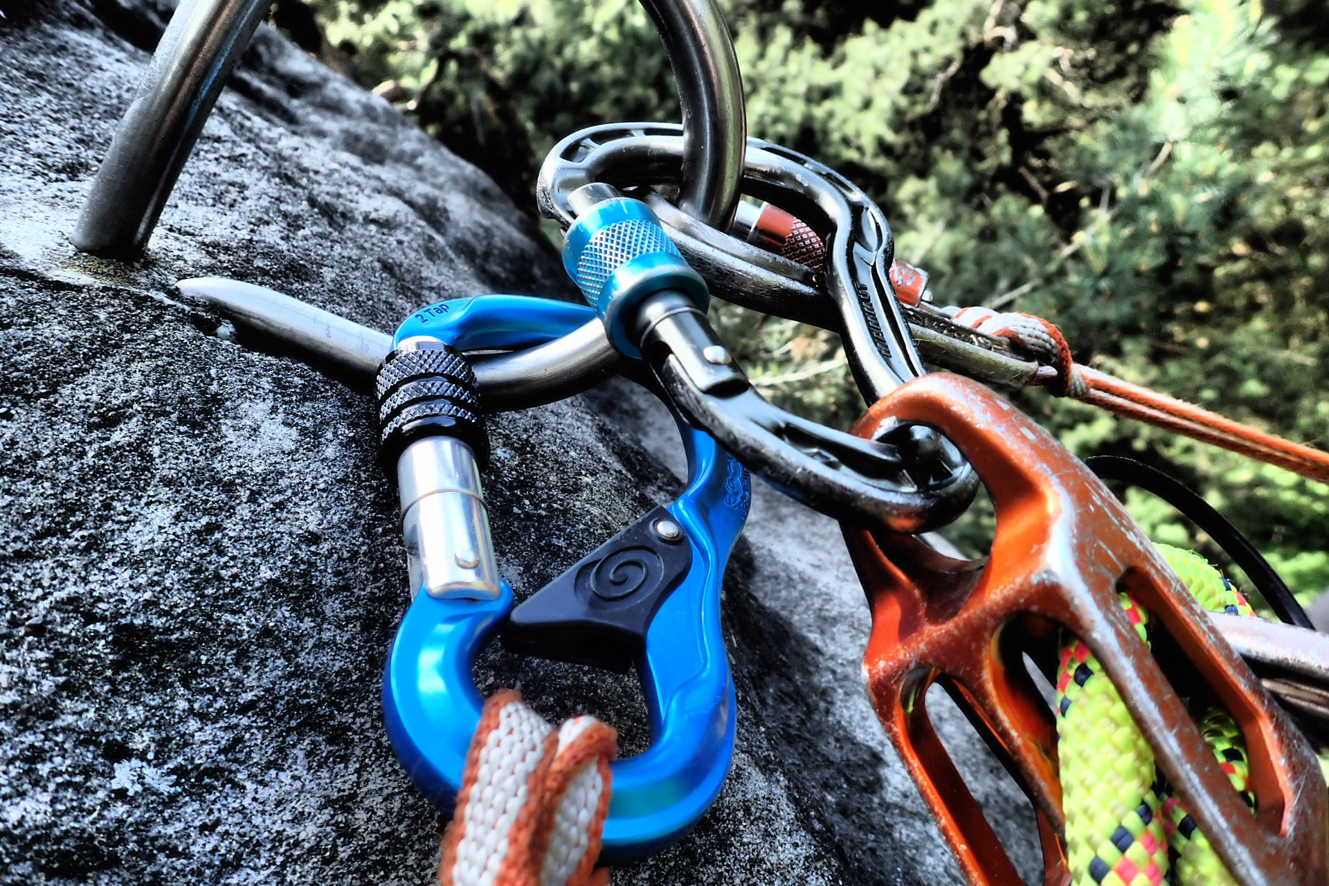 Karabina ROCK EMPIRE 2TAP jako připravená karabin a pro poskytnutí dopomoci při lezení via ferrat.