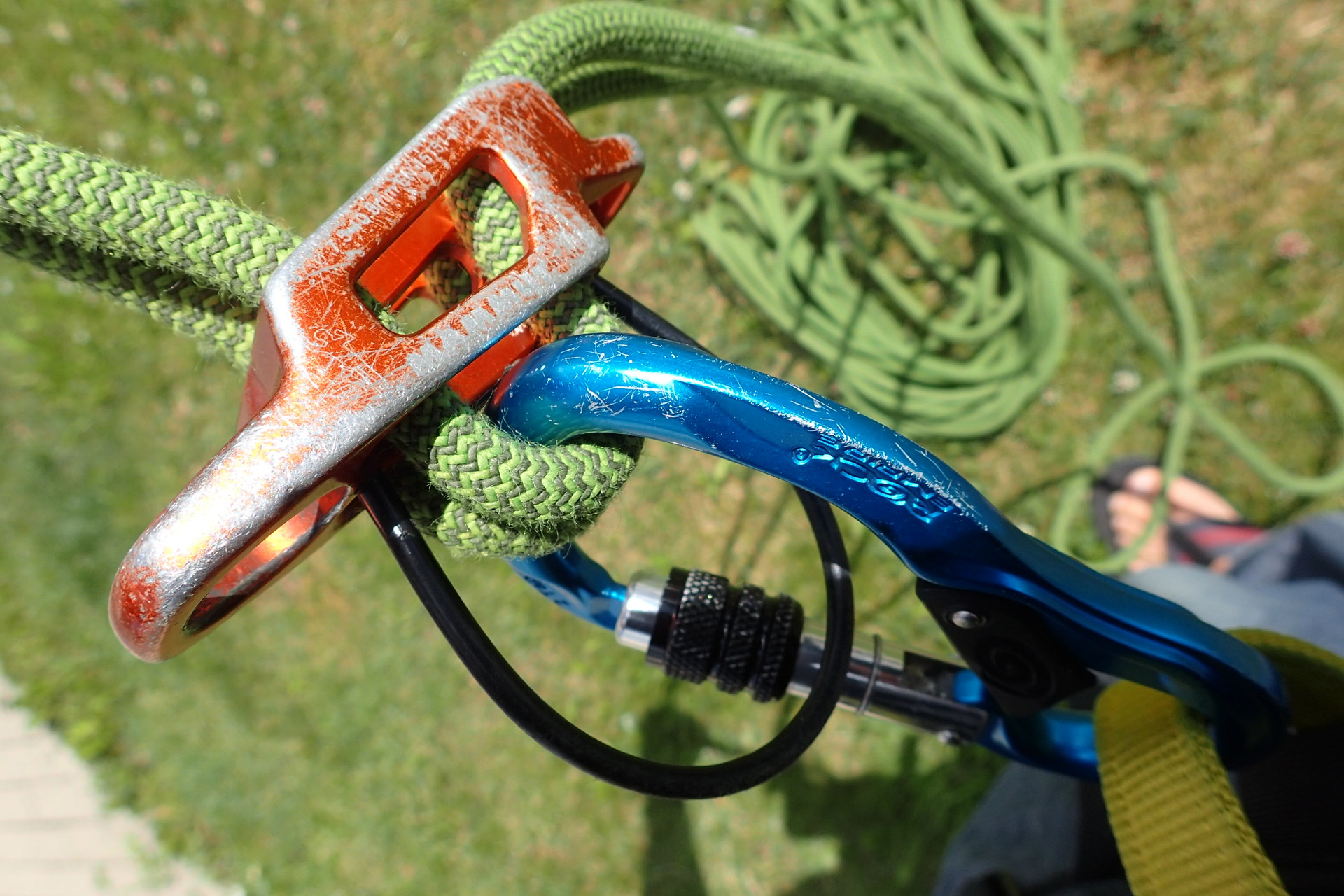 Tuto karabinou jsem však nemohl použít jako odsedávací karabinu do Rock Empire tlumičů pádů. Otvor v jejich kovovém segmentu je příliš malý a nelze tak karabinu RE 2Tap v ní přetočit.