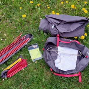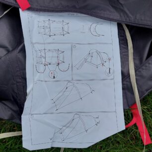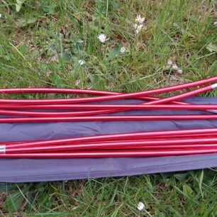 Stavba je jednoduchá. Tyče ke stanu Trimm Spark D jsou dvě a jsou rozdílně dlouhé. Kratší patří do nohou, tedy do zadní části a ta delší k hlavám, tedy do vchodu. Stačí je tedy protáhnout tunýlkem a zajistit jejich konce do kovových oček v podlážce stanu. A pak podlážku zajistit kolíky. Stejně tak vnější stan a celé to doladit pomocí dvojice šňůr, které napínají tunel v podélné ose. S napínáním podlážky to úplně nepřehánějte, pak by se vám mohly ztěžka zapínat zipy na moskytiéře, která tvoří vstup do vnitřního stanu.