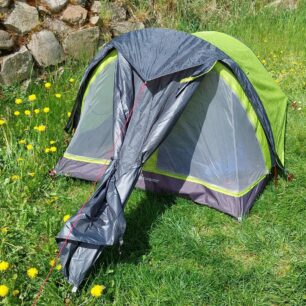 Ani velký a ani malý, přesto je lepší stan úhledně sbalit, aby se do obalu lépe vešel a snadno zavřít zipem. Kompresní popruhy lze použít na stažení a kompresi nebo zapnout tak, že vám vzniknou madla na nošení v ruce.