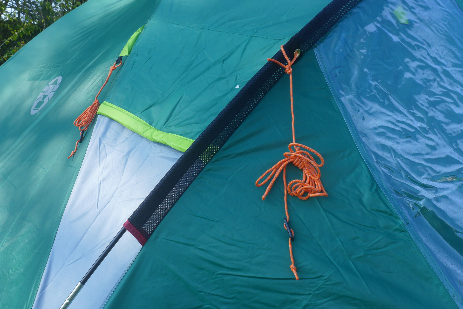Šňůrky k vypnutí stanu (je ale stabilní i bez nich)