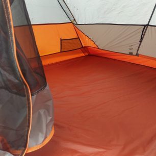 Jednou z velkých zajímavostí, kterou shledávám velmi šikovnou je pokračování podlážky ložnice do půli předsíňky. Podlážka se spojí s tropikem pomocí speciální spojky a poté se spolu s celým stanem vypne. Vznikne tak prostor, kde mohou být odložena zavazadla, aniž by hrozilo jejich navlhnutí od země. Díky zvednutým okrajům podlážky se nemusíme bát ani nenadálých proudů vody, které by zde mohly natéct při větších deštích. Druhá půlka předsíně zůstává volná pro pohodlný přístup do stanu a odložení bot.
