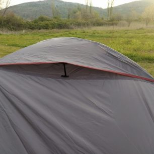 Stejně jako švy u podlážky jsou i švy u tropika tepelně lepené. Společně s polyuretanovým zátěrem na vnitřní a silikonovým zátěrem na vnější straně u tropika zaručují nepromokavost proti více jak 2000 mm vodního sloupce. Výrobce stan testuje v laboratoři kdy je postavený stan vystaven 200 l/m²/hod (po dobu 4 hodin, množství srážek odpovídá tropickému dešti). Osobně jsem ve stanu zažil jen pár běžných, jarních dešťů, kterým se stan ubránil bez problémů. Ventilace je u tropika řešena dvěma uzavíratelnými otvory v horní části stanu. Šikovným detailem je z mého pohledu zapínaní vchodu. Tropiko je spojeno s jezdcem zipu a tak ve chvíli, kdy otevíráme stan, nezůstává vchodová plachta volně viset, ale je shrnuta ke straně.